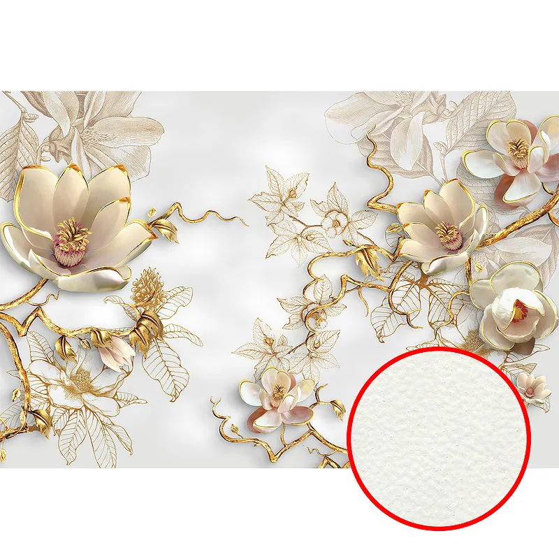 Преимущества Фреска Ortograf 3D 33078 Фактура флок FLK Флизелин (4*2,7) Белый/Золото, Цветы/Абстракция
