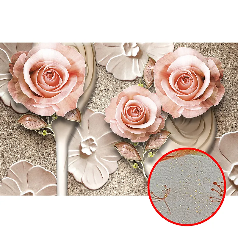 Преимущества Фреска Ortograf 3D 33091 Фактура бархат золото FX-G Флизелин (4,2*2,7) Бежевый/Розовый, Цветы/Абстракция