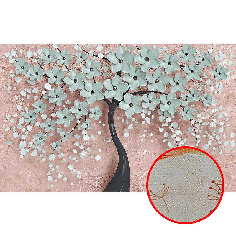 Фреска Ortograf 3D 33093 Фактура бархат золото FX-G Флизелин (4,3*2,7) Розовый/Голубой, Деревья/Абстрация