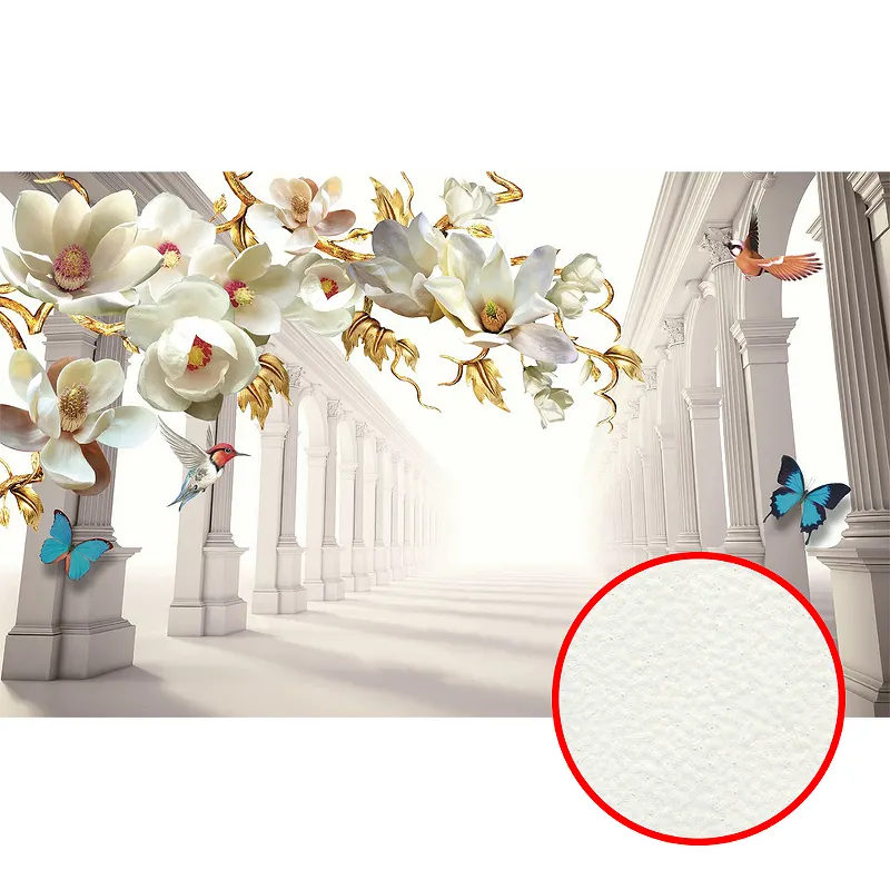 Фреска Ortograf 3D 33126 Фактура флок FLK Флизелин (4,4*2,7) Белый, Архитектура/Цветы/Бабочки