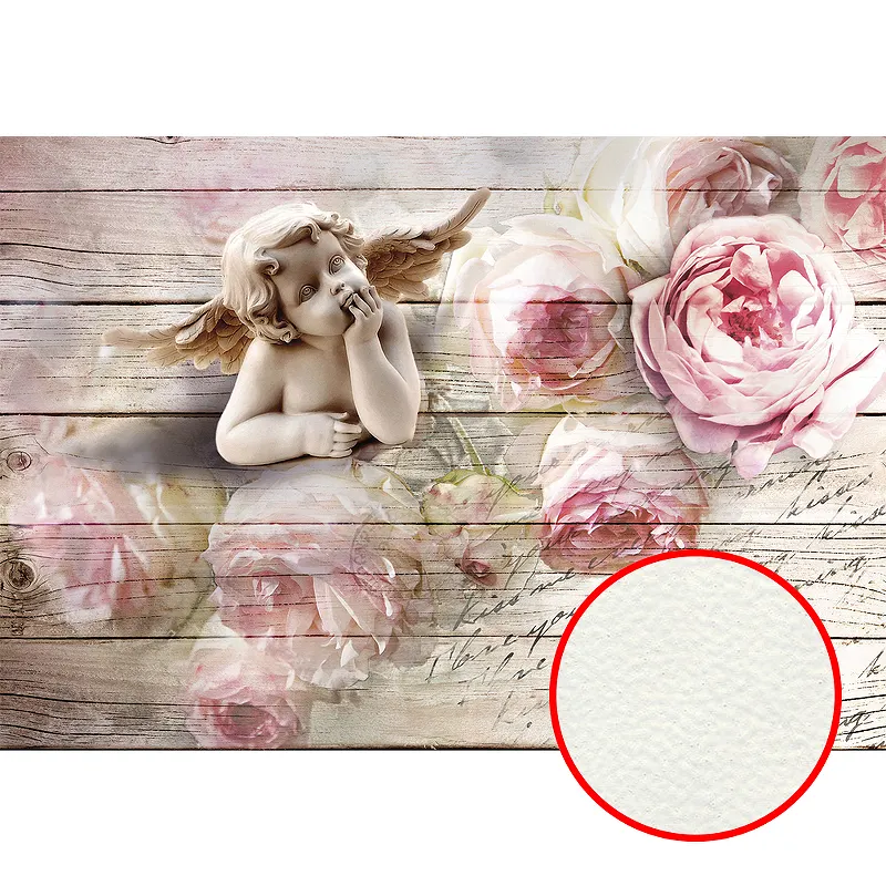 Фреска Ortograf 3D 6649 Фактура флок FLK Флизелин (4*2,8) Бежевый/Розовый, Цветы/Ангелы