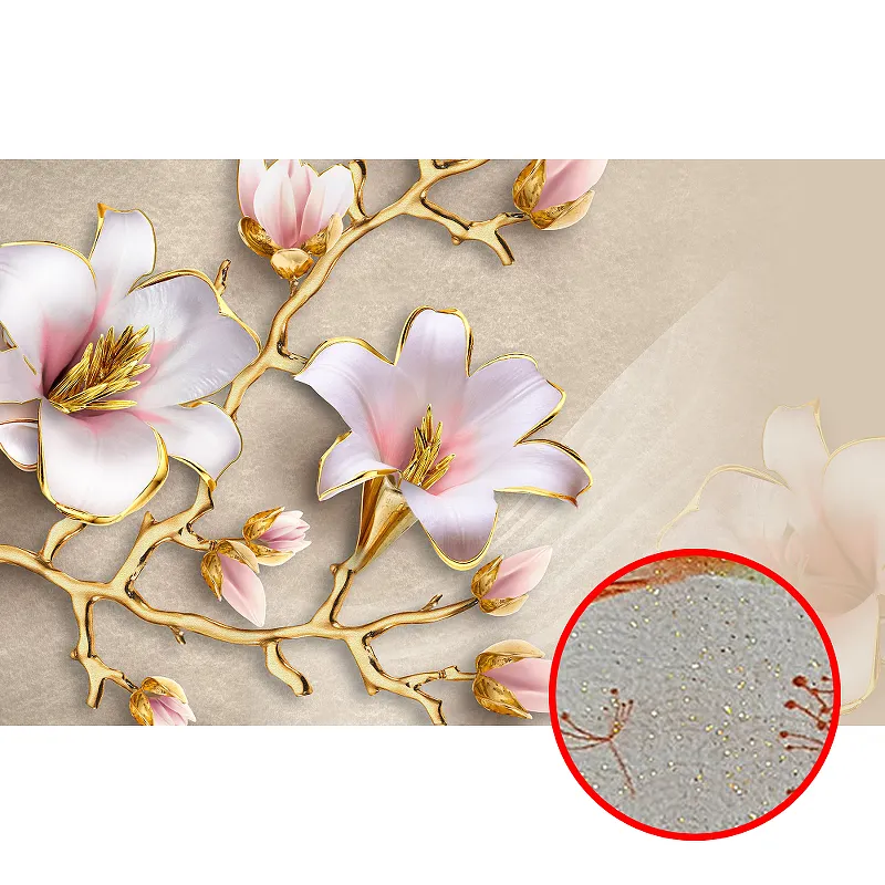 Фреска Ortograf 3D 6653 Фактура бархат золото FX-G Флизелин (5*3,2) Бежевый/Розовый/Золото, Цветы