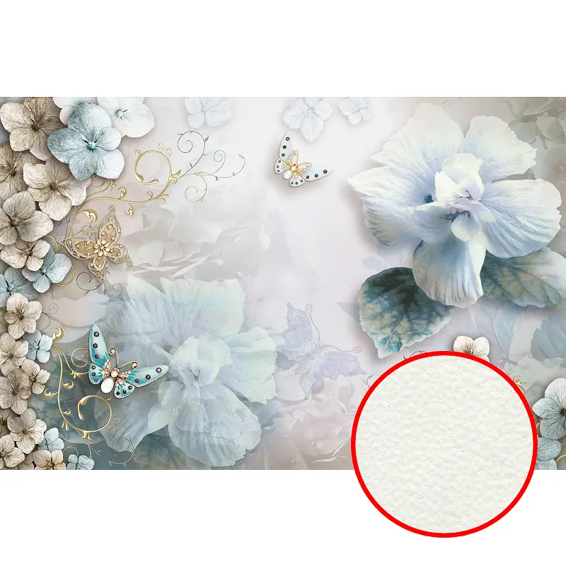 Фреска Ortograf 3D 6654 Фактура флок FLK Флизелин (2,95*1,96) Голубой/Бежевый, Цветы