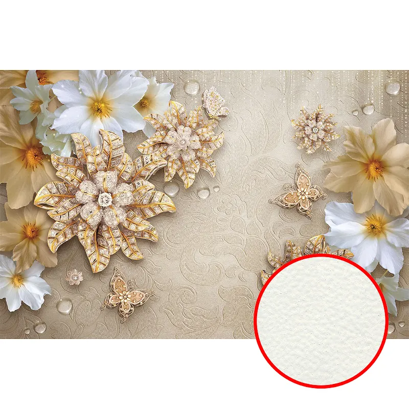 Фреска Ortograf 3D 6666 Фактура флок FLK Флизелин (3,35*2,2) Бежевый/Золото, Цветы
