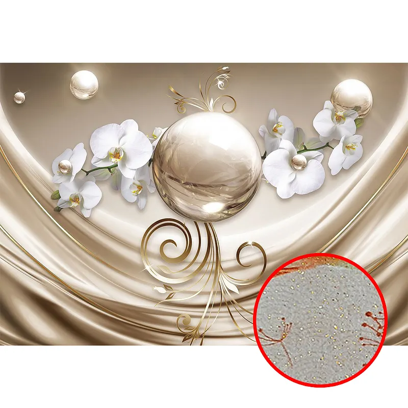 Фреска Ortograf 3D 6667 Фактура бархат золото FX-G Флизелин (3,04*2,1) Бежевый, Цветы/Абстракция