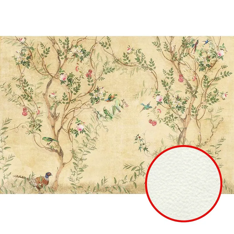 Фреска Ortograf 3D 6676 Фактура флок FLK Флизелин (4*2,7) Бежевый/Разноцветный, Деревья/Цветы/Птицы