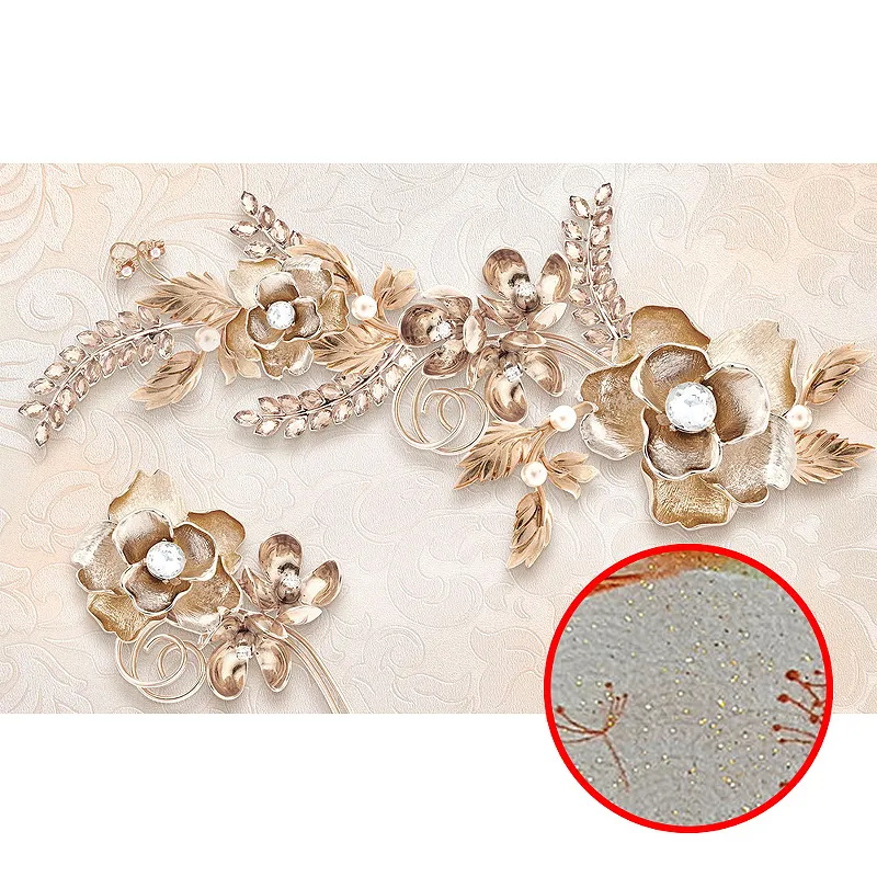 Фреска Ortograf 3D 6684 Фактура бархат золото FX-G Флизелин (3,6*2,7) Бежевый/Золото, Цветы/Абстракция