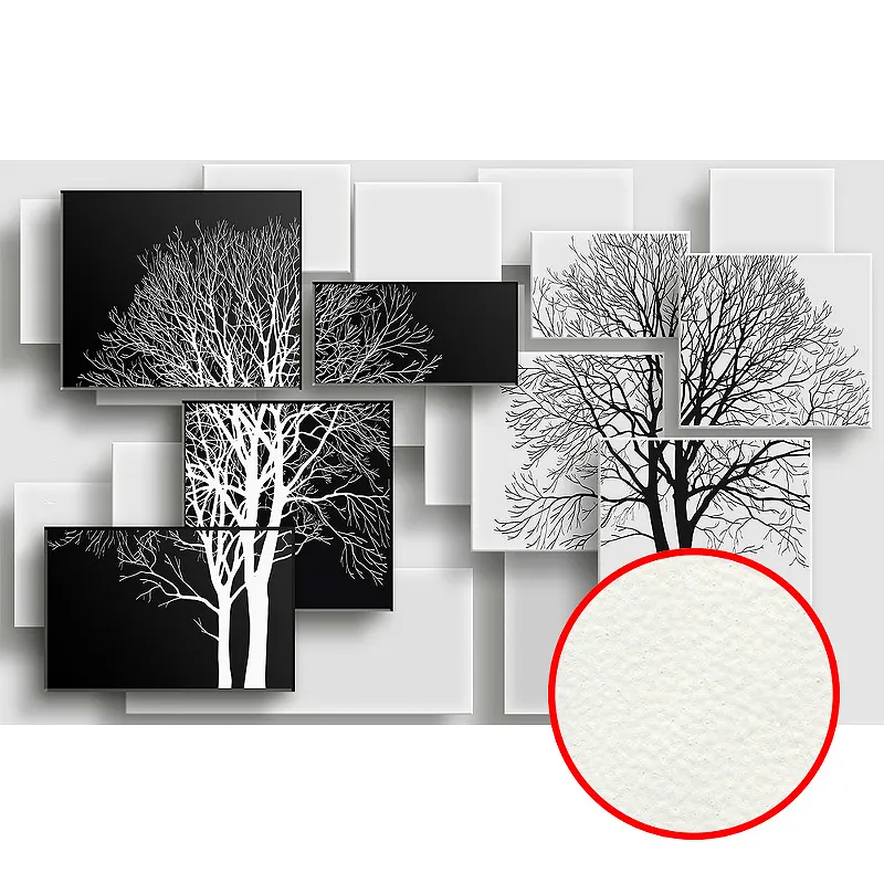 - Эстетическое разнообразие: Черно-белая фреска с рисунками геометрии и деревьев добавляет глубину и стиль, улучшая визуальное восприятие вашего пространства.