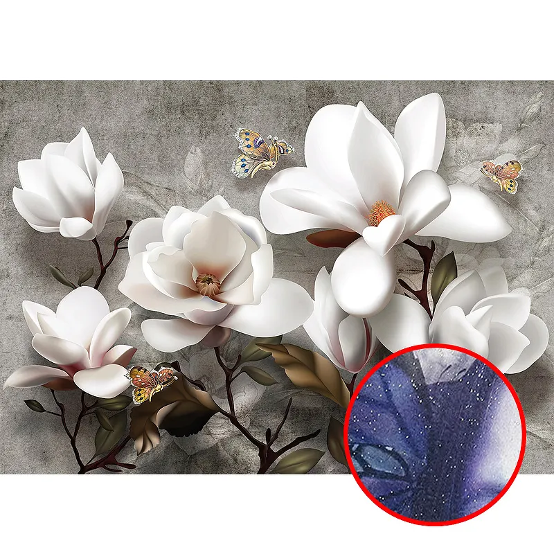 Фреска Ortograf 3D 6694 Фактура бархат серебро FX-S Флизелин (3,8*2,7) Серый/Белый, Цветы