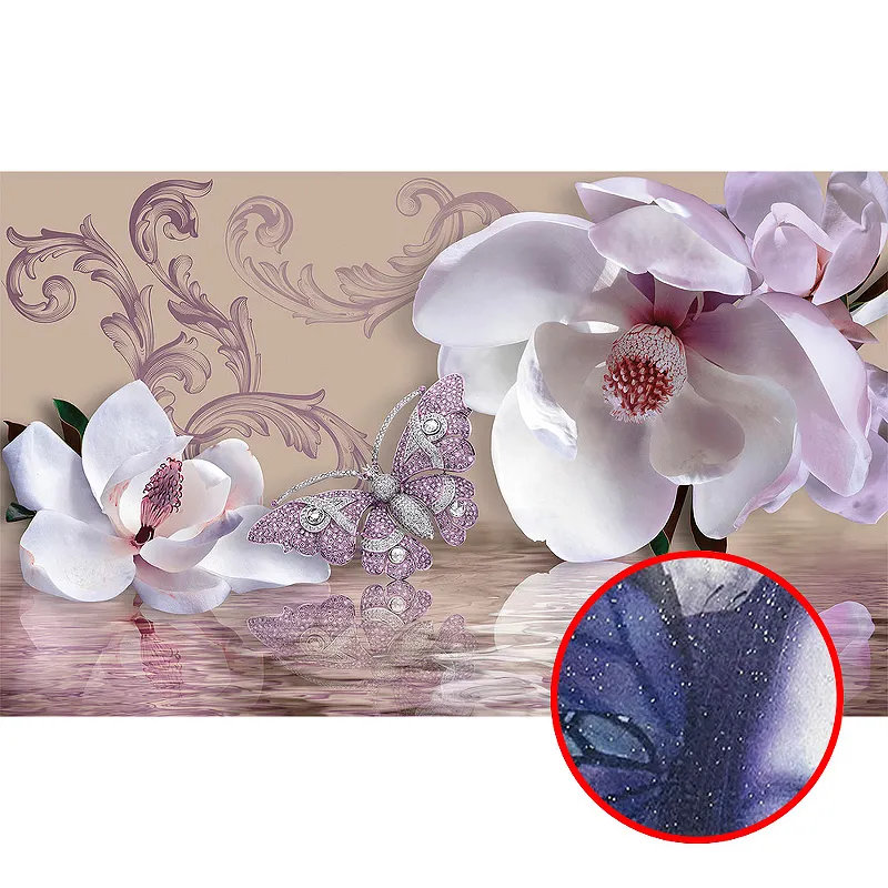 Фреска Ortograf 3D 6695 Фактура бархат серебро FX-S Флизелин (4,4*2,7) Бежевый/Сиреневый, Цветы/Абстракция