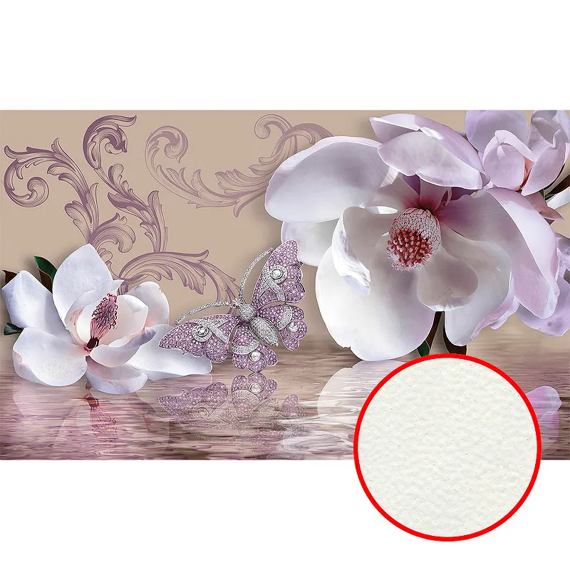 Фреска Ortograf 3D 6695 Фактура флок FLK Флизелин (4,4*2,7) Бежевый/Сиреневый, Цветы/Абстракция
