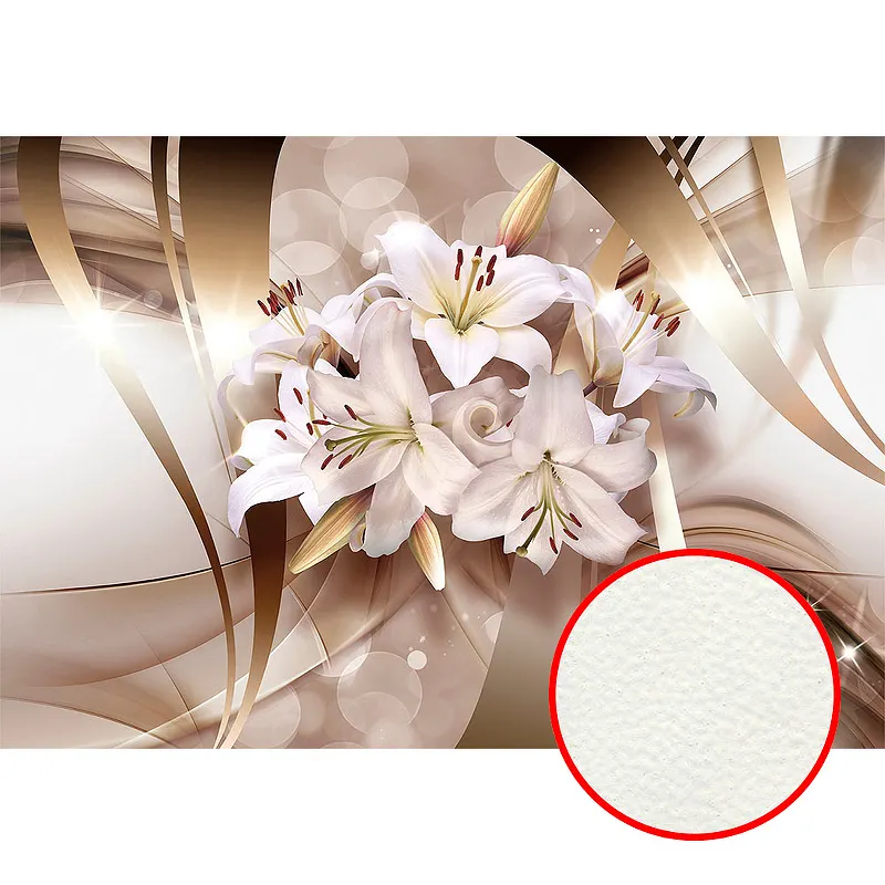 Фреска Ortograf 3D 6708 Фактура флок FLK Флизелин (3,9*2,7) Бежевый/Белый, Цветы/Абстракция