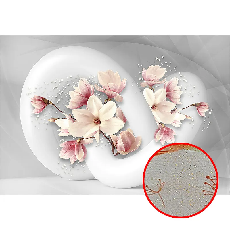 Фреска Ortograf 3D 6710 Фактура бархат золото FX-G Флизелин (3,9*2,7) Серый/Розовый, Цветы/Абстракция