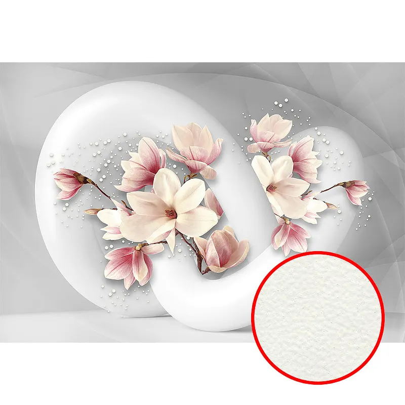Фреска Ortograf 3D 6710 Фактура флок FLK Флизелин (3,9*2,7) Серый/Розовый, Цветы/Абстракция