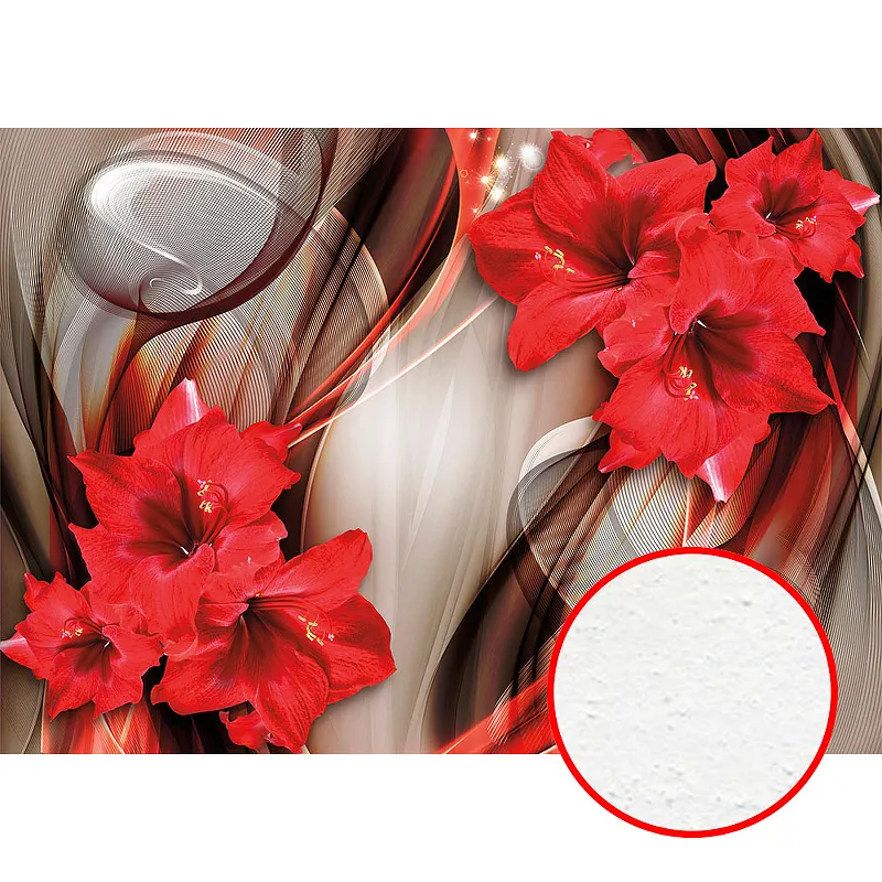 Фреска Ortograf 3D 6715 Фактура бархат FX Флизелин (3,8*2,7) Серебряный/Красный, Цветы/Абстракция