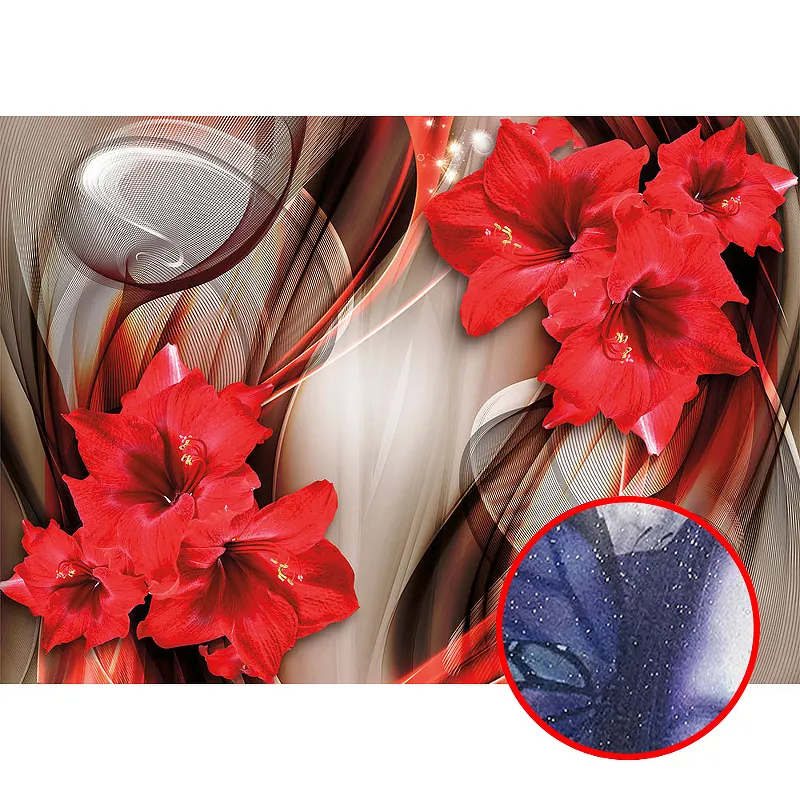 Фреска Ortograf 3D 6715 Фактура бархат серебро FX-S Флизелин (3,8*2,7) Серебряный/Красный, Цветы/Абстракция