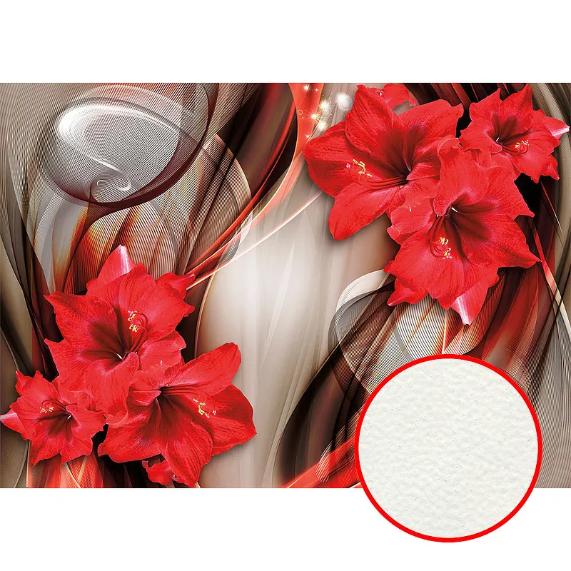 Фреска Ortograf 3D 6715 Фактура флок FLK Флизелин (3,8*2,7) Серебряный/Красный, Цветы/Абстракция