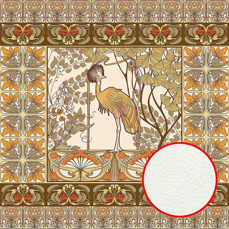 Фреска Ortograf Arabesque 33456 Фактура флок FLK Флизелин (2*2) Бежевый/Оранжевый, Птицы/Орнамент