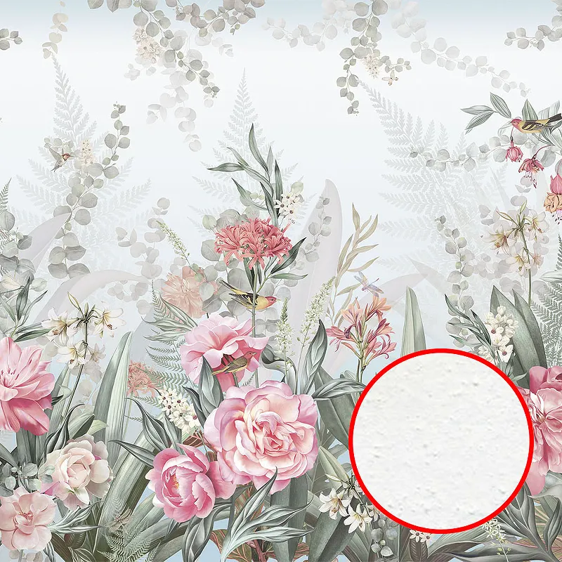 - Изысканный дизайн: Фреска с цветочным рисунком в голубых, зелёных и розовых тонах преобразит любое помещение.
