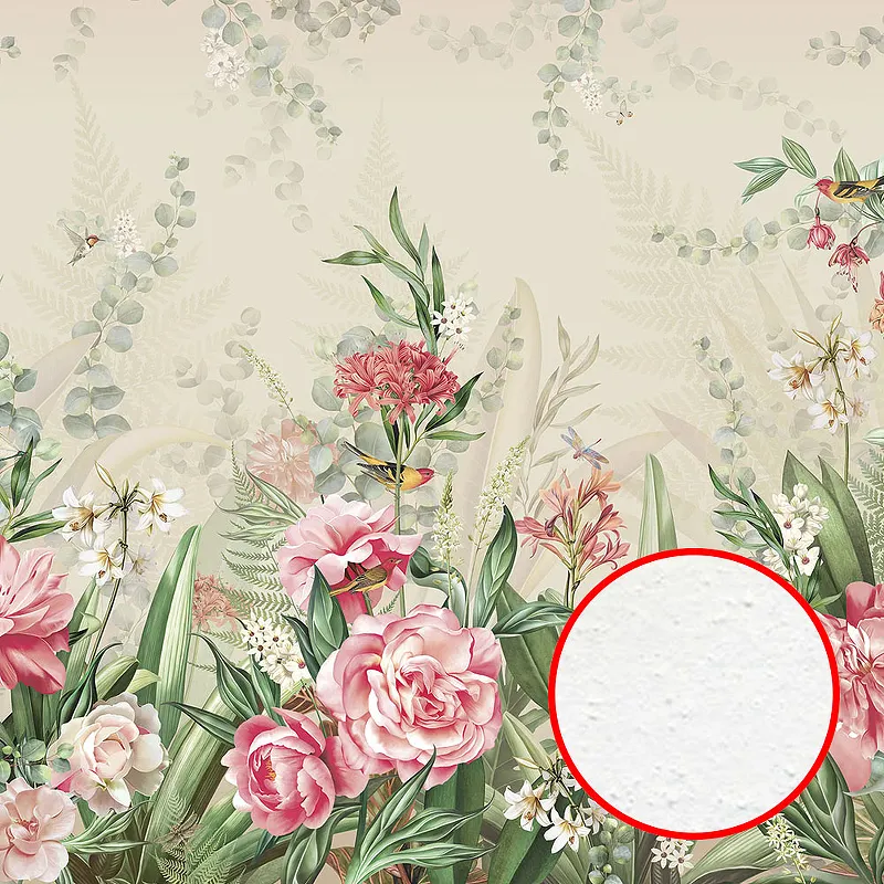 Фреска Ortograf Aurora 34106 Фактура бархат FX Флизелин (4,5*3) Бежевый/Зеленый/Розовый, Цветы