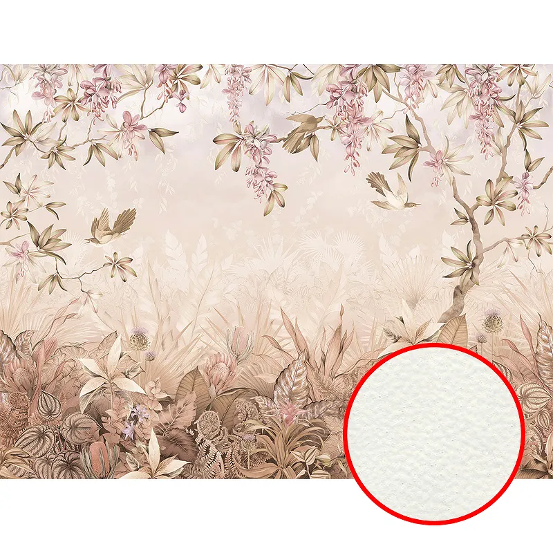 Фреска Ortograf Aurora 34111 Фактура флок FLK Флизелин (4*3) Бежевый/Зеленый, Листья/Цветы