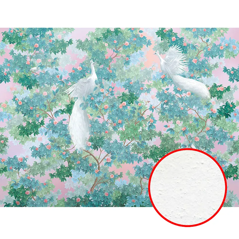 Фреска Ortograf Aurora 34123 Фактура бархат FX Флизелин (4*3) Зеленый/Розовый, Листья/Цветы/Птицы