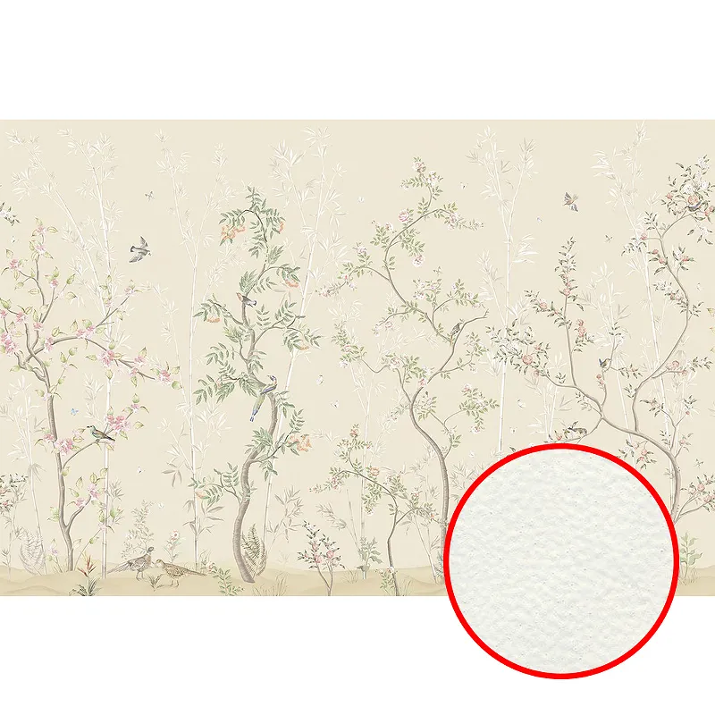 Фреска Ortograf Chinoiserie 33922 Фактура флок FLK Флизелин (4,5*3) Бежевый/Разноцветный, Деревья/Цветы/Птицы