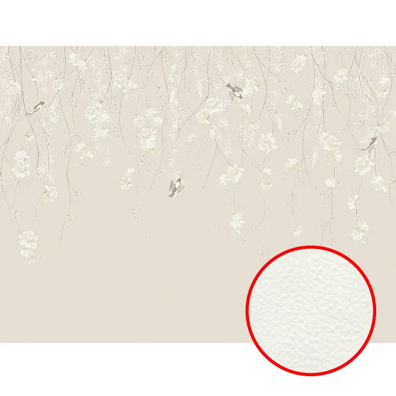 Фреска Ortograf Chinoiserie 33933 Фактура флок FLK Флизелин (4*3) Бежевый, Цветы/Птицы