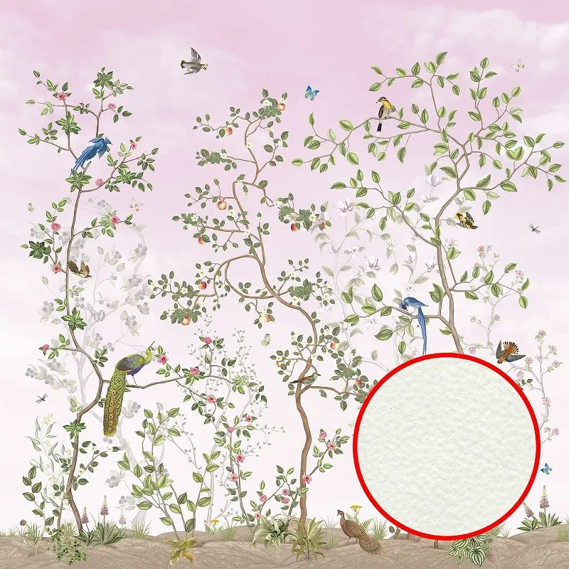 Фреска Ortograf Chinoiserie 33949 Фактура флок FLK Флизелин (2,7*2,7) Розовый/Зеленый, Цветы/Птицы