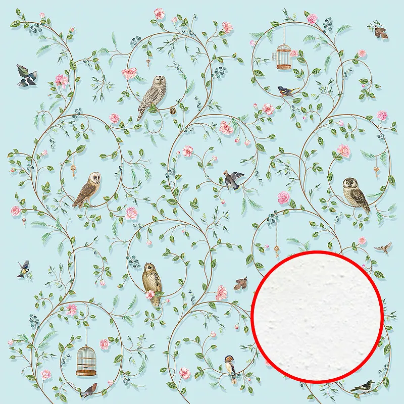 Фреска Ortograf Chinoiserie 33952 Фактура бархат FX Флизелин (3*3) Голубой/Зеленый, Цветы/Птицы