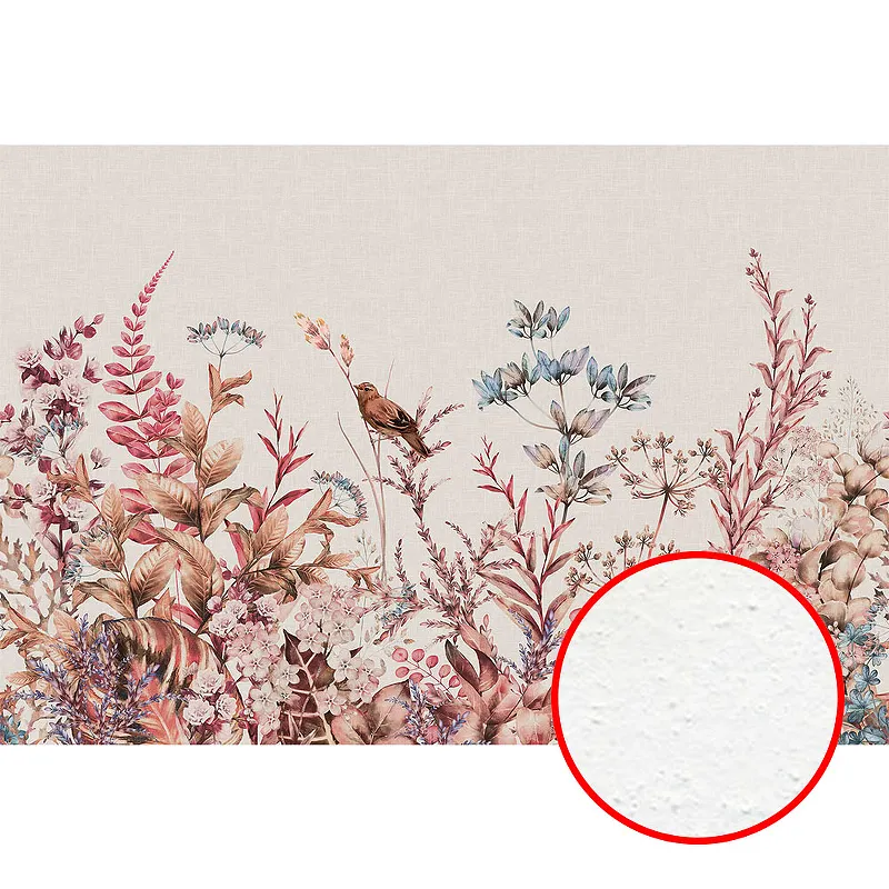 Фреска Ortograf Цветы 33603 Фактура бархат FX Флизелин (4*2,7) Серый/Розовый, Цветы/Листья/Птицы