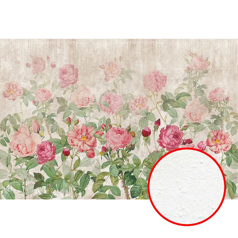 - Изысканный дизайн: Фреска с рисунком "Цветы" в зелёных, коричневых и розовых тонах станет центральным элементом вашего интерьера.