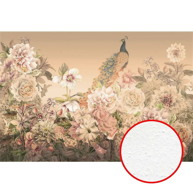 Фреска Ortograf Цветы 6720 Фактура бархат FX Флизелин (4*2,7) Бежевый/Розовый, Цветы/Птицы