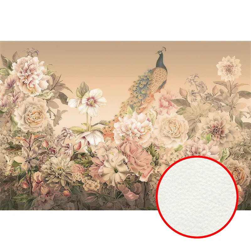 Фреска Ortograf Цветы 6720 Фактура флок FLK Флизелин (4*2,7) Бежевый/Розовый, Цветы/Птицы
