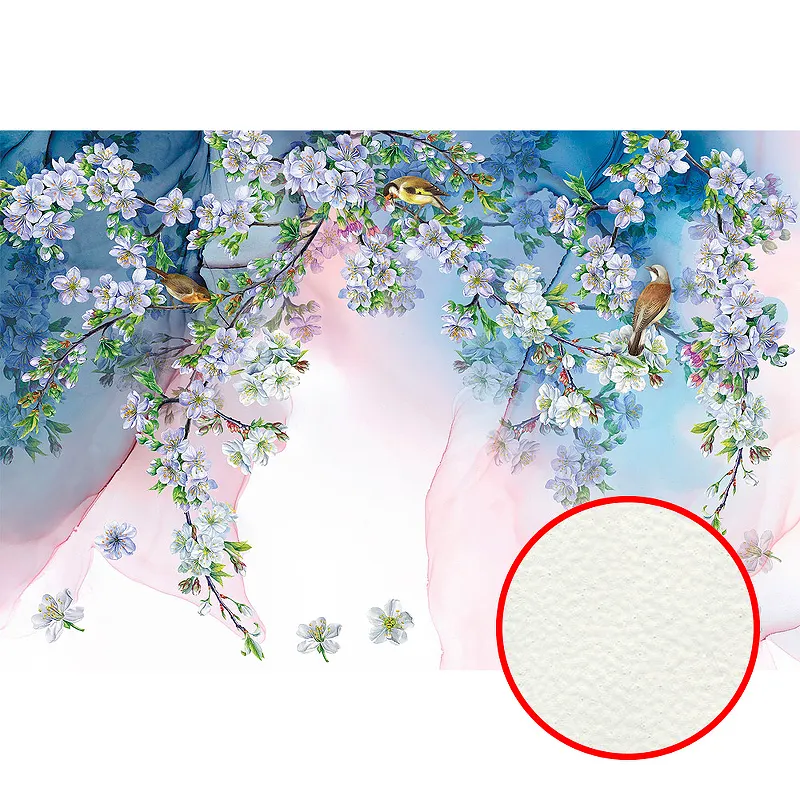 Технические характеристики Фреска Ortograf Цветы 6729 Фактура флок FLK Флизелин (4*2,7) Голубой/Розовый, Цветы/Птицы