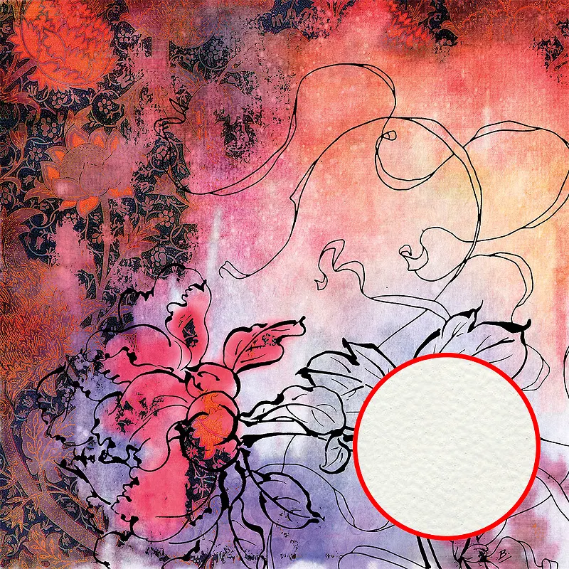 Фреска Ortograf Цветы 7051 Фактура флок FLK Флизелин (2,7*2,7) Красный/Сиреневый, Цветы/Живопись