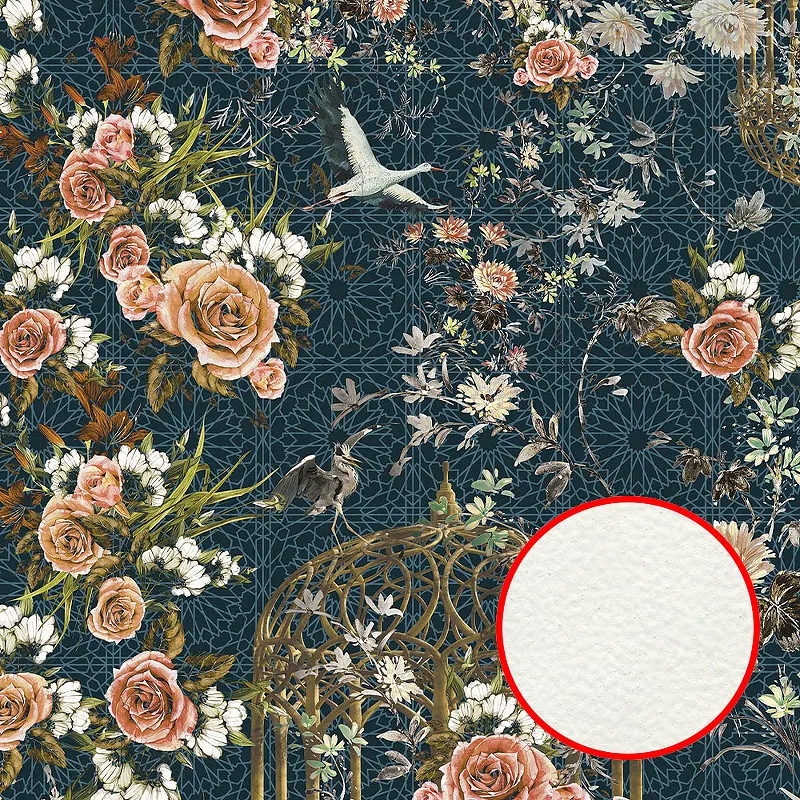 Фреска Ortograf Flora 31041 Фактура флок FLK Флизелин (4*2,7) Синий/Разноцветный, Цветы/Птицы