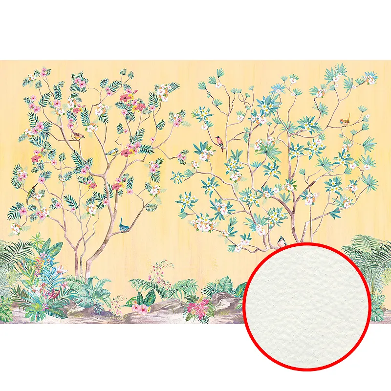 Фреска Ortograf Flora 31101 Фактура флок FLK Флизелин (4*2,7) Желтый/Разноцветный, Деревья/Цветы/Птицы