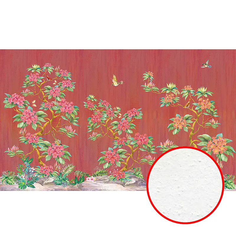 Фреска Ortograf Flora 31114 Фактура бархат FX Флизелин (4,5*2,7) Красный/Розовый/Зеленый, Деревья/Цветы/Птицы