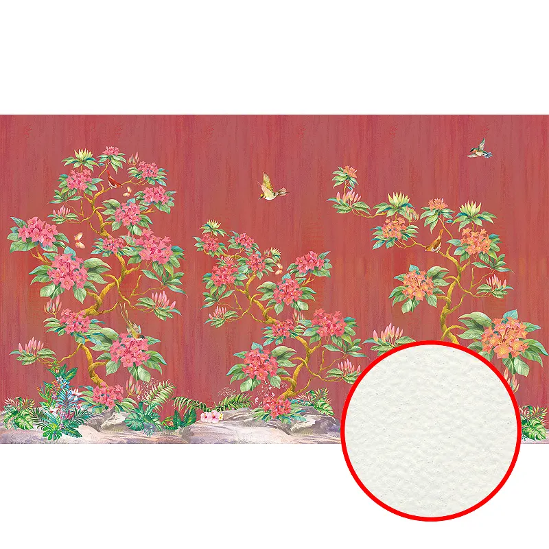 Фреска Ortograf Flora 31114 Фактура флок FLK Флизелин (4,5*2,7) Красный/Розовый/Зеленый, Деревья/Цветы/Птицы