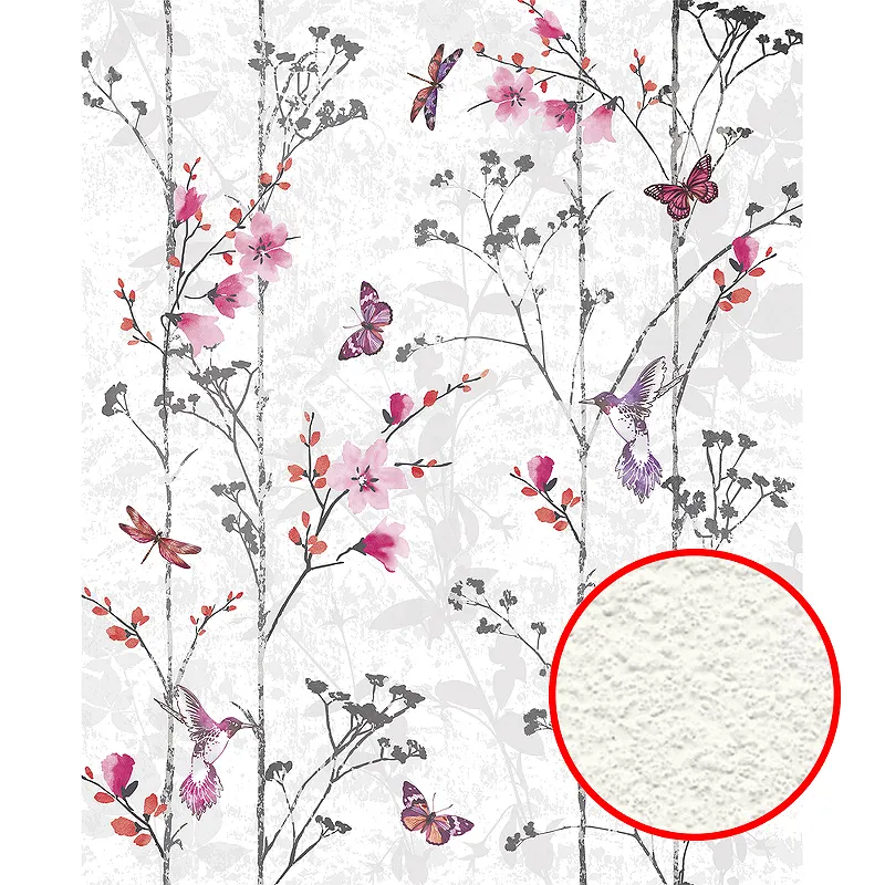 Фреска Ortograf Flora 31120 Фактура бархат FX Флизелин (2,2*2,7) Белый/Розовый, Цветы/Бабочки