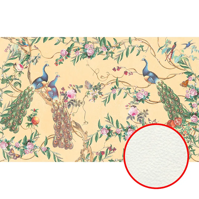 - Универсальный дизайн: рисунок с цветами и птицами в бежево-разноцветной гамме подходит для разных стилей интерьера.