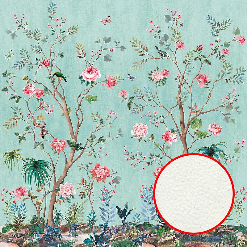 Фреска Ortograf Flora 31152 Фактура флок FLK Флизелин (2,7*2,7) Бирюзовый/Разноцветный, Цветы/Деревья/Птицы