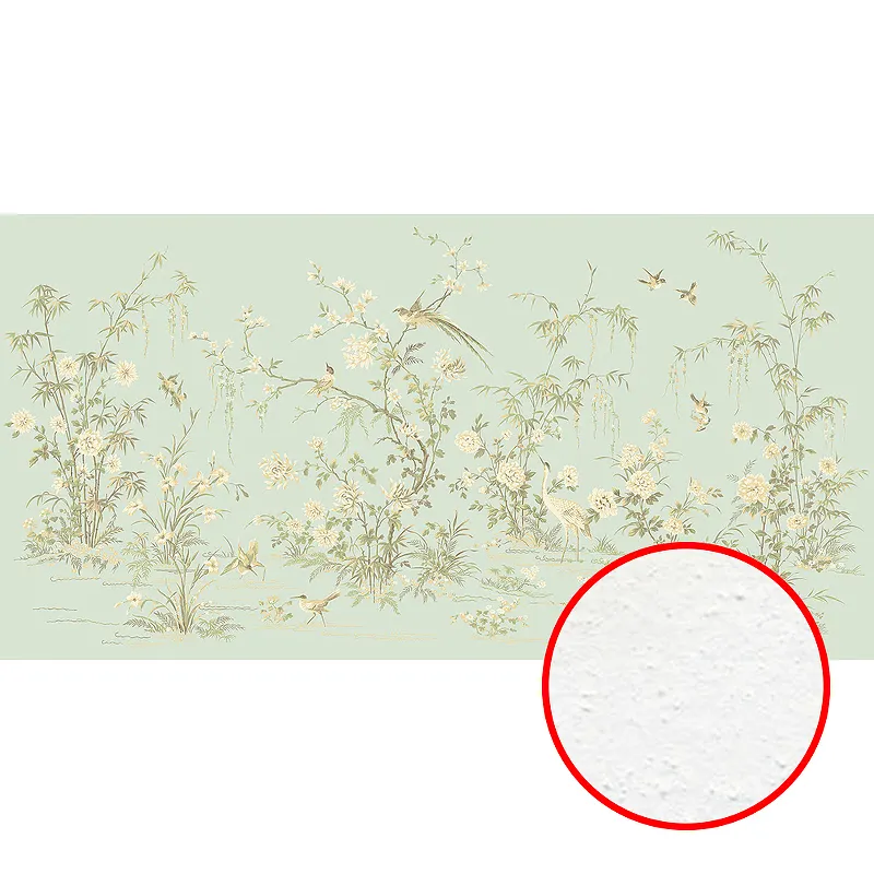 Фреска Ortograf Flora 31210 Фактура бархат FX Флизелин (5,3*2,7) Зеленый/Бежевый, Цветы/Птицы
