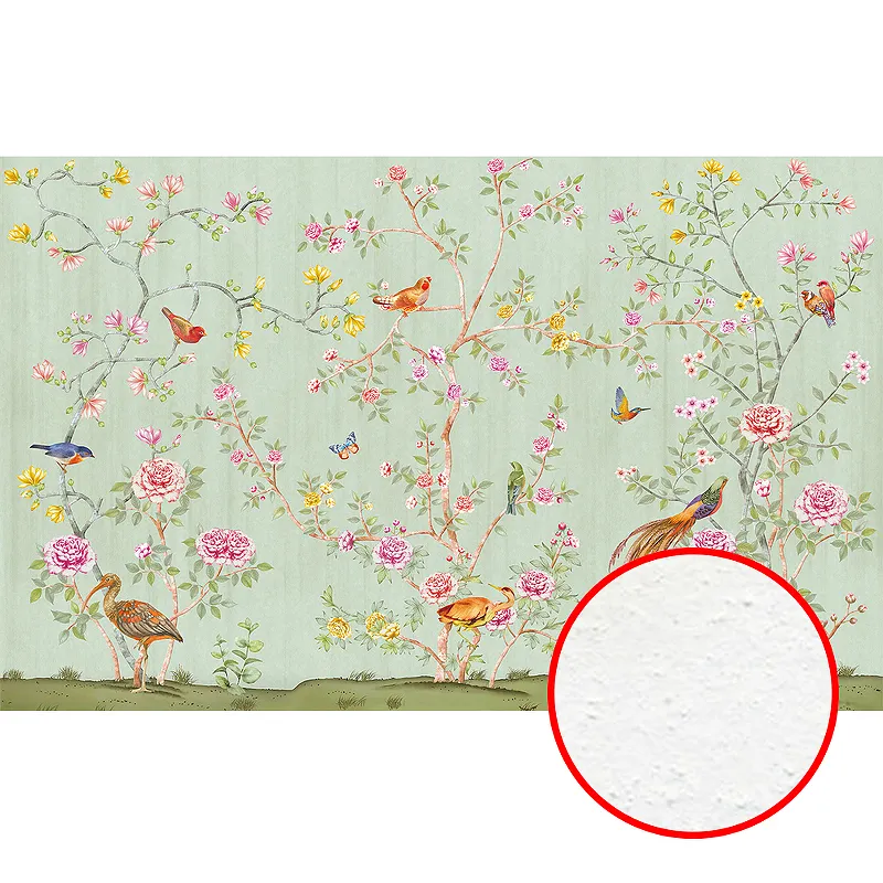 Фреска Ortograf Flora 31270 Фактура бархат FX Флизелин (4,3*2,7) Зеленый/Разноцветный, Птицы/Цветы