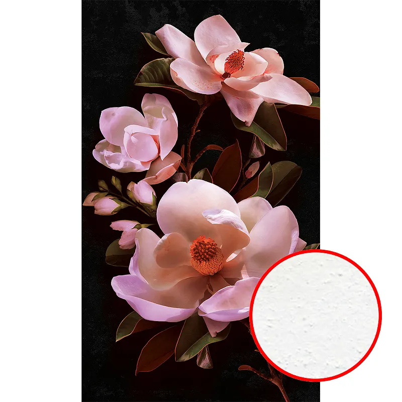 - Флизелиновая основа с текстурированным напылением для создания бархатистой поверхности.