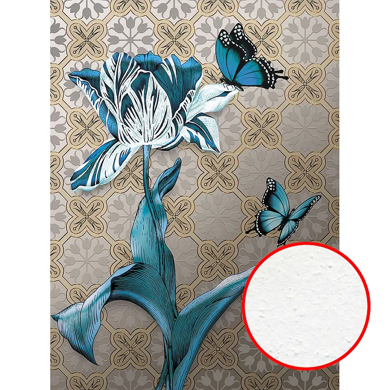 Фреска Ortograf Flower Dreams 31659 Фактура бархат FX Флизелин (2*2,7) Серый/Бежевый/Голубой, Цветы/Бабочки