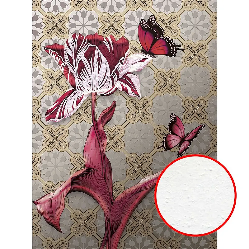 Фреска Ortograf Flower Dreams 31660 фактура бархат FX Флизелин (2*2,7) Серый/Бежевый/Красный, Цветы/Бабочки