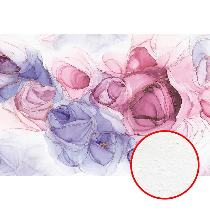 - Фреска из флизелина с текстурированным напылением в сиренево-розовой гамме.
