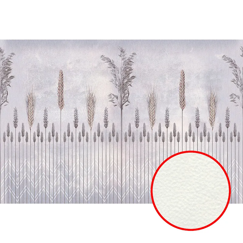 - Декоративная штукатурка: фреска выполнена на флизелине с текстурированным напылением, придающим поверхности мелкозернистый рельеф.